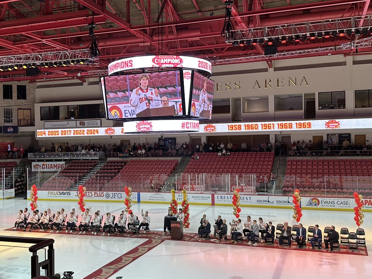 On Tuesday night, I was in Magness Arena to celebrate this achievement with many fellow fans. My feet are still sore from standing on concourse floors. I waited in line for hours to get a poster signed by this team that overcame so much adversity throughout the season. It’s hard to believe this group will never play another game together for Denver. Boys, you made me very proud to be a Pioneer. Thank you.